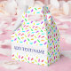 Sprinkles in pink, yellow, green, purple and blue. Custom party favour boxes. Great for personalised party decor.