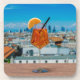 Spritz cocktail on a table with view of Milan Coaster