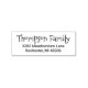 Rubber stamp design features a sweet curlyQ style script font for the name and simple easy to read return address text that can be personalised.