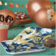 Hand-painted original painted artwork was created and brought to life in the form of a party plate design to coincide along with the "Gleaming Indigo" party supplies and tableware decor in the SPWW '25 collection. I find joy and love turning my paintings into tangible home lifestyle products for one's personal style worldwide, adorned with my personalised signature. Colours were chosen by wanting to pair a contrasting gold with a dark indigo blue.