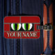Background shows eyes peering through a brick wall on this tag with customizable name.