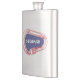 The product is a good size and came exactly as it was pictured.  The lid is not attached to the flask, which could be dangerous on drunken nights... The print came out surprisingly well and looks very sharp.  Would definitely recommend.