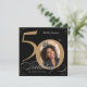 Square 50th Birthday Black Gold Calligraphy Photo Invitation