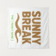 Cozy up your space with this custom "SUNNY BREAK" tapestry! Featuring a trendy, nature-inspired cork/wood texture and fun wave graphic. Perfect for family rooms, dorms, or beach houses. Easily personalize the text below! Great gift idea!