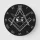 Square and Compass with inset G (White) Round Clock