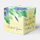 Special wedding guest favour box with lovely navy blue, butter yellow and a mix of green floral rose pattern, text can be personalised to any message, or text is removable.