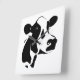 Square clock shown with a white background with a cute cow print. Customise this clock or buy as is.