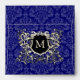 Square Dark Royal Blue Damask Monogram Envelopes