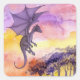 Square Purple Dragon Sticker. Watercolor print.