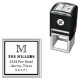 Modern address stamp design featuring your initial, name and address inside of a bold square frame.