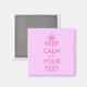 Square Keep calm magnet with pink letters | Customisable template. KeepCalm and your text. Create a girly parody.