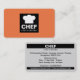 A stylish business card template designed for a cafe, restaurant or coffee shop in mind. The card has a 1.3in square black panel on the front containing a generic chef's hat logo/symbol with the company name and type of business beneath. The reverse side of the card has a black header and footer layout with the company name repeated in the header and the business type beneath. The central section has the address at the top with opening times in the centre, with telephone number beneath. The black footer contains the email and website addresses. This template is designed to be easy to customise but obviously your details will be different and may require additional customisation e.g. if names are longer etc. The background colours can also be changed.