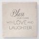 Square marble stone coaster, with beige background with "Bless Our Home With Love and Laughter." Nice for a friend!