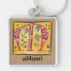 Square Mediaeval Floral Illuminated M Monogram Key Ring
