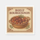 Square napkin design featuring the classic French dish Boeuf Bourguignon in a rich retro vintage style. Central illustration of tender braised beef pieces in deep red wine sauce with carrots, mushrooms, pearl onions, and herbs, served in a rustic casserole dish. Warm retro color palette: burgundy red, warm brown, cream, muted orange, sage green. Light textured aged-paper background. Subtle French bistro–inspired ornamental border. Add elegant vintage typography: “Boeuf Bourguignon”. Balanced, cozy, high-resolution composition for napkin printing.