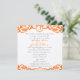 Square Elegant Vintage Orange Damask Wedding Invitation - Shown with Orange and Gray Lettering but you choose the color of fonts from almost 200 colors! Also shown with the RSVP on Front- if you prefer a separate RSVP see the 5 x 7 size below-