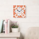 Square Orange Wall Clock for country kitchen