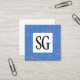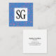 A square business card template with initials placed inside a square panel. This version also has a background image. The initials are in the Integrity bold font. Name and profession/job title along with telephone, email and website address in black on the reverse side on a white background, using variations of the Matt Antique font.