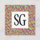 A square business card template with initials placed inside a square panel. This version also has a background image. The initials are in the Integrity bold font. Name and profession/job title along with telephone, email and website address in black on the reverse side on a white background, using variations of the Matt Antique font.