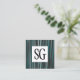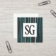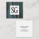 A square business card template with initials placed inside a square panel. This version also has a background image. The initials are in the Integrity bold font. Name and profession/job title along with telephone, email and website address in black on the reverse side on a white background, using variations of the Matt Antique font.