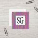 A square business card template with initials placed inside a square panel. This version also has a background image. The initials are in the Integrity bold font. Name and profession/job title along with telephone, email and website address in black on the reverse side on a white background, using variations of the Matt Antique font.