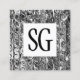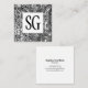 A square business card template with initials placed inside a square panel. This version also has a background image. The initials are in the Integrity bold font. Name and profession/job title along with telephone, email and website address in black on the reverse side on a white background, using variations of the Matt Antique font.