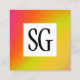 A square business card template with initials placed inside a square panel. This version also has a background image. The initials are in the Integrity bold font. Name and profession/job title along with telephone, email and website address in black on the reverse side on a white background, using variations of the Matt Antique font.