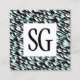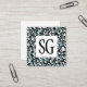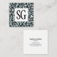 A square business card template with initials placed inside a square panel. This version also has a background image. The initials are in the Integrity bold font. Name and profession/job title along with telephone, email and website address in black on the reverse side on a white background, using variations of the Matt Antique font.