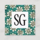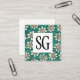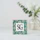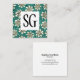 A square business card template with initials placed inside a square panel. This version also has a background image. The initials are in the Integrity bold font. Name and profession/job title along with telephone, email and website address in black on the reverse side on a white background, using variations of the Matt Antique font.