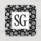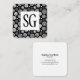 A square business card template with initials placed inside a square panel. This version also has a background image. The initials are in the Integrity bold font. Name and profession/job title along with telephone, email and website address in black on the reverse side on a white background, using variations of the Matt Antique font.