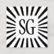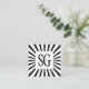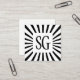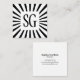 A square business card template with initials placed inside a square panel. This version also has a background image. The initials are in the Integrity bold font. Name and profession/job title along with telephone, email and website address in black on the reverse side on a white background, using variations of the Matt Antique font.