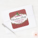 Square Polka Dot Pattern Christmas Stickers. Great for christmas party tables! Design features a festive red and white dotty background with a green and red bordered tag and sprig of holly and berries! Wording, text colour and style can be changed in the 'Customise' Menu. .