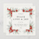 Hand painted water color red berries, pine leaves and foliage provide a frame for your Christmas wishes. All text is fully editable so you can easily change the message/style/color/size. The back is blank if you would like to add a longer message.