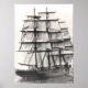 A real ship with an American flag. This is not a bark or a barkentine. It's a real ship!