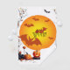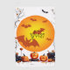 A Halloween-themed image featuring a large orange full moon with silhouetted bats flying across it. In the center of the moon, there is a large square root symbol over the number 4489. Below the moon, three glowing carved jack-o'-lanterns sit among rocks, fallen autumn leaves, and dried tree branches. The overall atmosphere is spooky and festive, combining mathematical elements with a holiday scene.