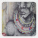 Beautiful amazing artistic cute facial vintage elegant graphic drawing painting tribal ethnic traditional jewellery colourful necklace beaded Maasai woman Square Sticker