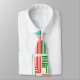 This necktie has a Bauhaus design of squares made from right angles in red, orange, blue, and green.