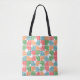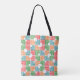 This tote bag has a Bauhaus design of squares made from right angles in red, orange, blue, and green.