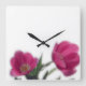 This is a square wall clock decorated with a photograph of beautiful pink tulips.