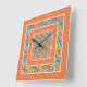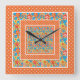 Square Wall Clock, Orange Floral and Polka Dots Clock