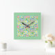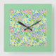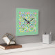 Square Wall Clock, Spring Primroses, Mint Green Square Wall Clock