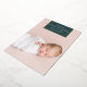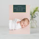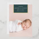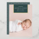 Chic and modern birth announcement features a single full bleed vertical/portrait orientated photo with a rectangular banner element at the top, bearing baby's name, birthdate, and birth stats, and trimmed with gold foil. Add a personal message to the back, along with an additional photo.