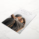 A simple and elegant save the date design for modern couples, featuring a vertical photo with a rose gold foil geometric element at the top, bearing your names, wedding date, and location in chic sans serif and italic lettering. Add additional details to the back. Due to the placement of the design elements, this style is recommended for vertical photos with ample light or white space at the top.