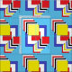 This geometric abstract artwork by Richard H. Fay features an array of squares in the primary colours of red, blue, and yellow, as well as black and white.