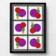 Brightly coloured circles stand stacked inside black and grey square frames in this geometric abstract art by Richard H. Fay.