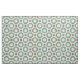 Seamless geometric pattern featuring geometric shapes in teal, blue, brown and beige.