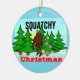 Funny Squatchy Christmas Bigfoot Tacky Christmas Ornament. Amaze your friends and family with this cool hilarious Sasquatch Bigfoot with red santa hat and Christmas tree in the woods round Christmas ornament with customisable text "Squatchy Christmas". This cool and funny squatch Christmas tree hanger is fully customisable, add your text(s) and image(s)!