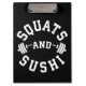 Squats and Sushi - Carbs and Leg Day - Funny Gym Clipboard