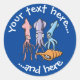 Three cute squid cartoons and a triton sea shell. Custom background colour. Two text fields on circle.