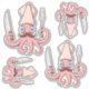 Pink squid chef cartoon with moustache holding knife and cooking fork.